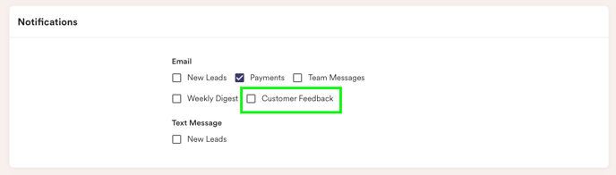 Settings → Email → Customer Feedback & Reviews